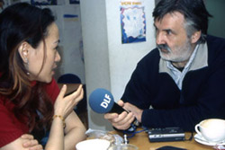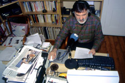 Udo Seiwert-Fauti ist ein Ein-Mann-Unternehmen, eine Marke. Er ist der „einzige deutsche Journalist, der im schottischen Parlament akkreditiert ist.“ Dafür steht er und damit wirbt er. Sein ‚Studio’ ist ein schmuckes honigbraunes, Reihenhaus mit Vorgarten im Süden von Edinburgh. Von seinem kleinen Büro aus beliefert er Radiostationen der ARD, die BBC und mehrere Zeitungen sowie Fachzeitschriften. Sein Tor zur Außenwelt: der Computer mit Schnitt-Programm und ein 15.000 Euro teures Reporterset. Hier liest er live seine Texte und spielt dazu die O-Töne per Computer ab. Seine Beiträge überträgt er per ISDN in die Schalträume der deutschen Sender. Dann heißt es gewöhnlich: „Hallo, hier ist Udo Seiwert-Fauti aus Edinburgh .... Jetzt schneiden, jetzt schneiden...“ Hinter ihm lagern derweil seine Schallplattensammlung, zugleich auch sein Musikarchiv und reihenweise Bücher im Regal. Wohnzimmeratmosphäre. Wenn Seiwert-Fauti zum Fenster hinausblickt, dann blickt er auf Edinburghs schroffen, grünen Hausberg Arthur´s Seat. Aber für die schöne Aussicht bleibt oft keine Zeit: Themenangebote müssen raus, Kontakte gepflegt und neue Beiträge produziert werden. „Sehen sie, das sind meine Themen“, sagt er und hält einen hiesigen Zeitungsartikel über einen deutschen Wissenschaftler, der Goldfische zum Wasserklären benutzt, hoch. „Ich muss Marktnischen suchen, das bieten, was die Korrespondenten in London nicht liefern“, erklärt er.